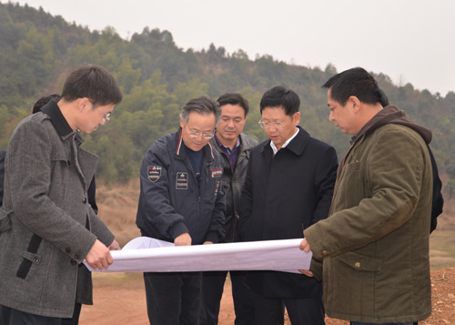 在项目现场,谢富山董事长针对云峰湖国际旅游度假区项目内的创元路、安置房及生态体育公园建设情况向赵副市长作了简要汇报,介绍了片区下阶段开发构想及项目推进的相关问题。